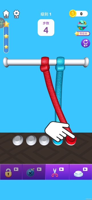 单机连线是一款解开绳索缠绕的益智休闲游戏。刚进入游戏的玩家可以挑战简单的游戏关卡。只有两根绳子缠绕在一起,找到解开的方法,点击挑战,按照指定的步骤解开绳子。如果你成功解开它,你可以挑战下一个级别。后一级的绳子将升级到三、四、五,如果你成功挑战一级,你将获得金币奖励。在挑战之前,你应该制定一个好的解决步骤。一不小心解错了就会缠绕的更多。单机连线是对玩家智力能力的一次重大考验。绳子解开得越多,难度就越大。解开绳子需要敏锐的思考。如果你有信心,你可以挑战困难的事情。感兴趣的小伙伴快来下载体验吧!