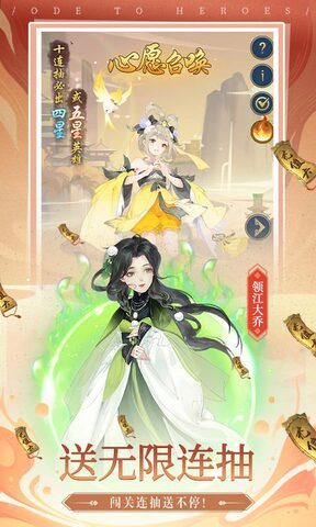 千秋辞官网手游是一款以三国为主题的卡牌游戏。游戏采用了非常美丽的民族风格画面,人物造型采用二维风格制作,以东方历史神话为基础。在这里,你会看到主要的仙女战争,搅动仙女世界的超级混乱。游戏中的冒险情节非常精彩和丰富PVP游戏玩法,来带你的朋友去体验吧!这款官方网站手机游戏具有超休闲的民族风格放置手机游戏,活动丰富,离线挂机可以获得丰富的资源,容易培养稀有英雄;跨服务竞争,各种战略阵容,带来精彩刺激的战斗体验;精致的绘画风格,突破传统的人物形象设计。
