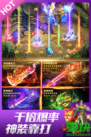 2.热血激情的野外战斗不断的刷怪爆装享受战斗的刺激,超高爆率满地光柱,各种极品装备让玩家捡到手软。
