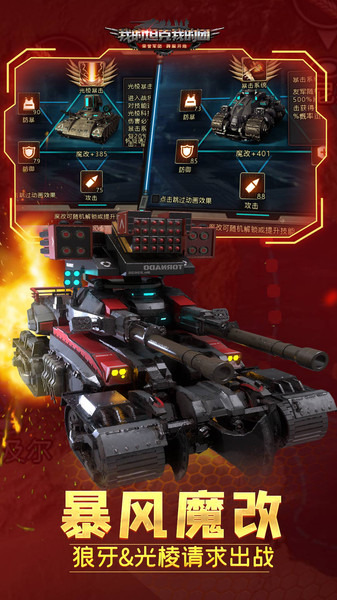 我的坦克我的团游戏优势1、可以随意打造自己的专属坦克,亲自配置各部件,展现您坦克的魅力,无限制对战。