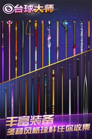 3.游戏还为大家准备了多种属性、不同品质外形的球杆和球桌,让大家可以炫出自己的球技,彰显出自己的至尊身份。