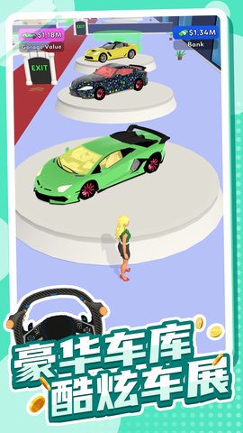 2.每辆车都有自己独特的价值,收集这些稀有车,成为停车场豪华车之王。