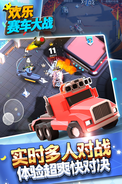 欢乐赛车大战是一款Q萌可爱的赛车类轻竞技游戏,游戏中你将驾驶着各色的赛车进行对战,8张不同类型的地图等着你来探索,收集地图资源,摧毁敌人的汽车,顺利成为老司机。欢乐赛车大战能够同时实现超多的玩家对战,并且能够驾驶不同的车辆在众多的车辆中横冲直撞,享受大乱斗的快乐。感兴趣的小伙伴快来下载体验吧!