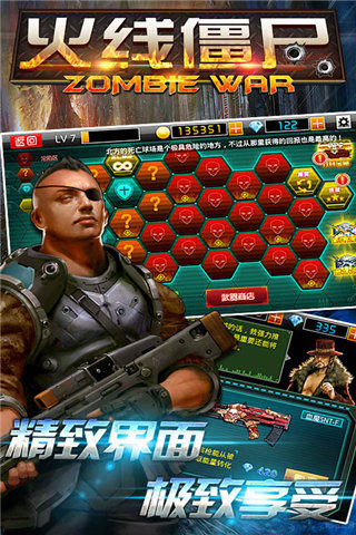 精致界面 极致享受--游戏的主界面很直观,背包、武器等栏目一清二楚,可以在每一场战斗前都做好充分的准备。进入战斗后,僵尸的血液飞溅,将逼真感进行到底。