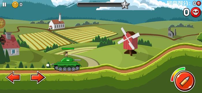 3、用坦克的炮弹击败对手,通过虚拟摇杆来控制坦克的移动。