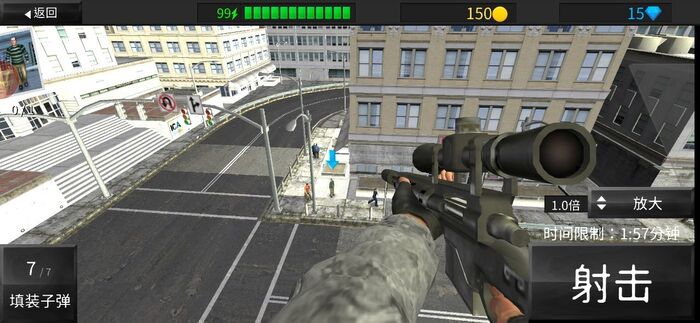 3、操作很简单,滑动屏幕进行射击,升级你的狙击枪提高精度、伤害和射程。
