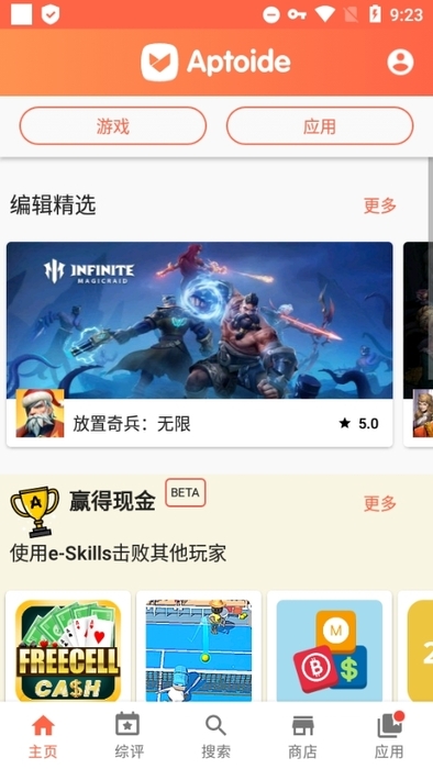 aptoide安卓版怎么用1.打开软件后,主页分为应用和游戏两个部分。
