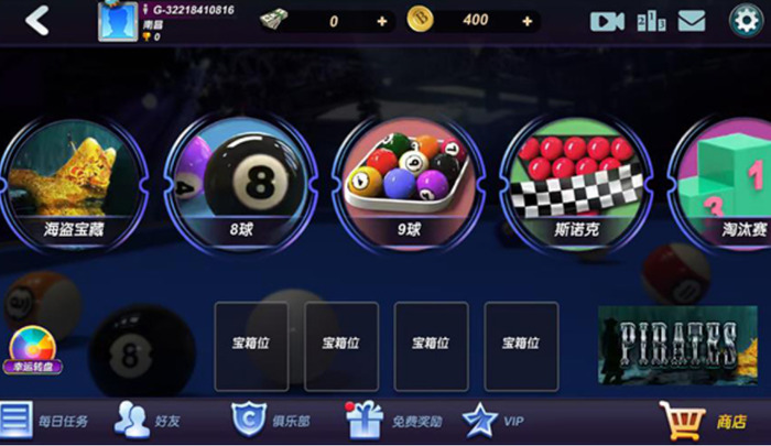 台球俱乐部:通过创建or加入俱乐部大显身手,在众多高手中脱颖而出,创建属于自己的团队,每周更有丰富的专属俱乐部奖励等你来拿