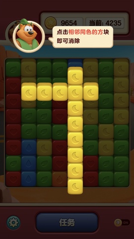 4.小熊爱消除正版最新版采用经典的消除方法,不断消除游戏中相同颜色的方块,以获得积分。
