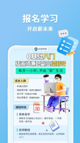 在线学插画app的特点1.提供基础插画、色彩、构图等课程,适合初学者入门。