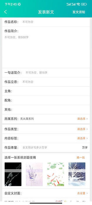 2. 提供作品创作和发布功能,支持用户创作各种文学作品。