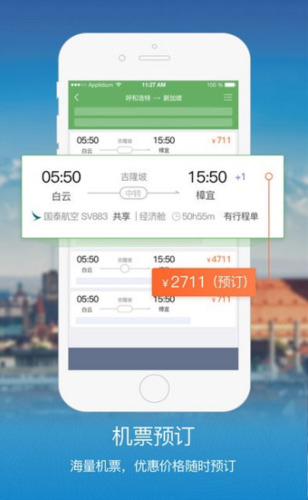 2. 航班预订:用户可以进行机票购买预订,支持多种支付方式。