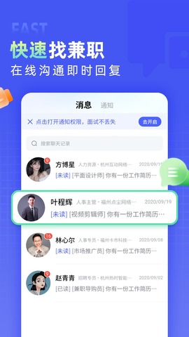 3.快速面试:兼客直聘app支持线上预约和在线面试,用户可以通过app进行快速、便捷的面试流程。