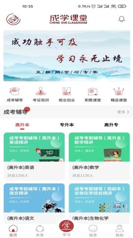 2.成学课堂提供了大量的课程视频、图文资料以及在线测试,让用户可以根据自己的需要和兴趣,选择适合自己的课程,进行线上学习。
