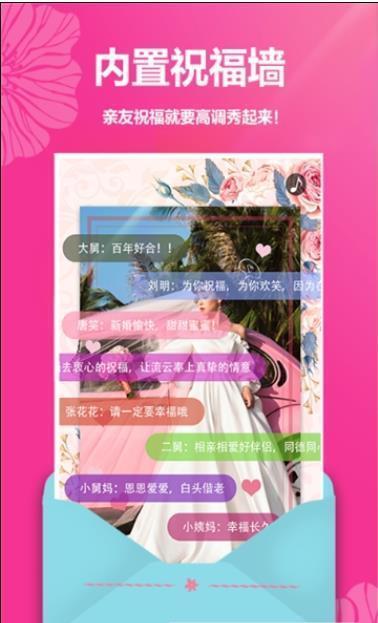 婚礼请柬app的介绍1.婚礼请柬app提供了多种美观的模板和设计,用户可以根据自己的婚礼主题、个性化喜好、场地信息等自由选择和定制。