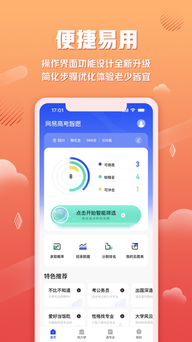 网易高考智愿app怎么样?1.提供全国范围内的大学和专业信息,包括著名高校和地方高校的专业设置、录取要求、就业前景等,有利于综合了解院校和专业信息。