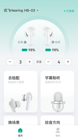 2.讯飞听力健康apk免费下载后,通过APP连接助听器,用户可以实时听到手机、电视、音乐等不同场景下的声音,并根据自身需要自由调节音量和音质。