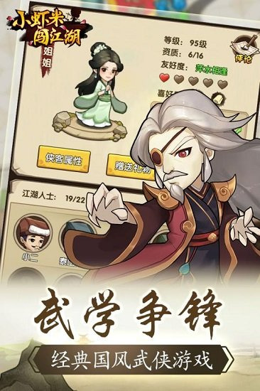 小虾米闯江湖官方正版游戏优势1、在江湖之路上完成一系列任务和挑战,包括打怪、切磋武艺、聚义馆等,通过官网获取无需氪金也能玩的攻略,了解各种技能大全,不断积攒经验值和金币。
