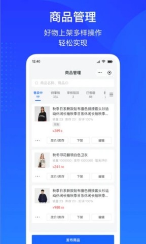 2、商品管理:商家可以在App上添加、编辑和删除商品信息,包括商品名称、价格、库存、描述、图片等。