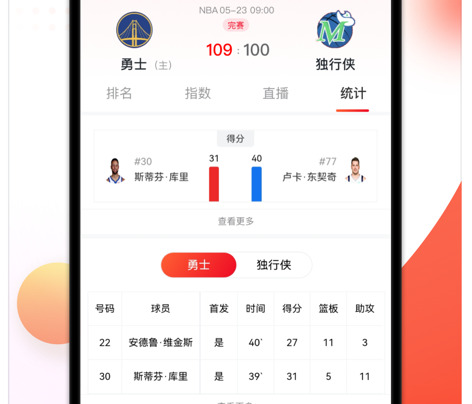 大量的赛事数据一网打尽,轻松查阅球员信息。