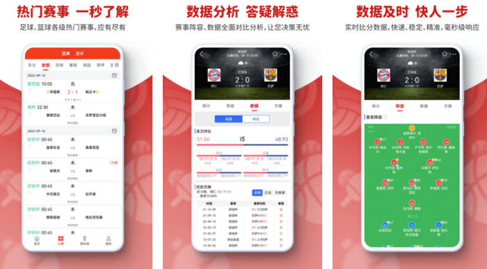 3、及时数据更新:提供实时比分数据,快速、稳定、精准,毫秒级响应。
