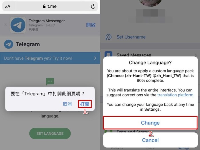 高级用户现在可以通过点击顶部的翻译栏实时翻译整个聊天、群组和频道。选项菜单可让您隐藏栏并控制翻译哪些语言。