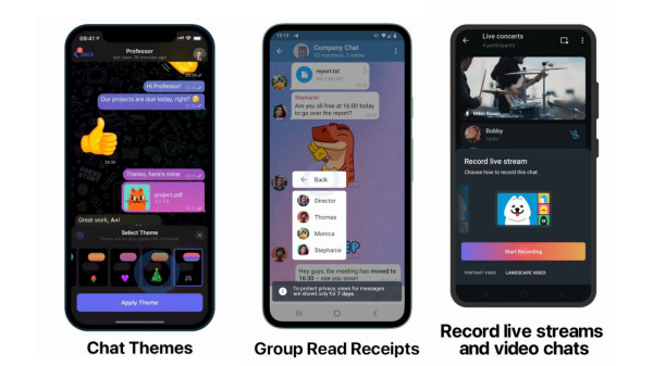 高级用户现在可以通过点击顶部的翻译栏实时翻译整个聊天、群组和频道。选项菜单可让您隐藏栏并控制翻译哪些语言。