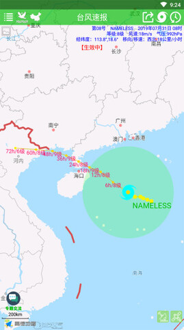 台风速报app功能1.台风路径实时更新:台风速报app提供实时的台风路径信息,包括台风位置、强度、移动方向和速度等,帮助用户了解最新的台风动态。