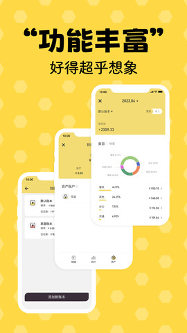 3.数据分析功能:蜂窝记账软件提供数据分析和统计功能,可以清晰展示用户的消费情况和收支状况,有助于理财和预算。