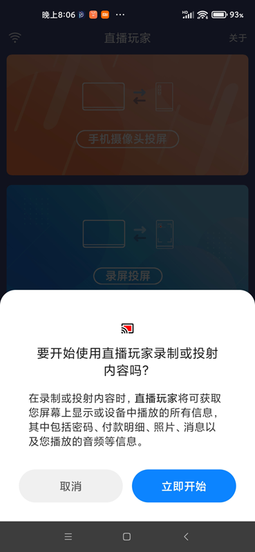 1. 一键投屏,用户可以快速投屏至 V导播APP或者其他禾鸟电子的直播设备上,如V20,V66,V68等。