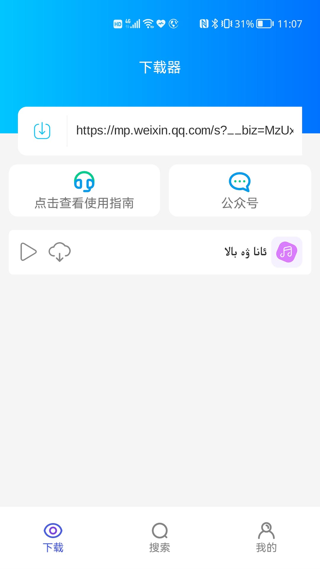 2.看到公众号中的视频或音频可以轻松下载,使用简单方便。还可以搜歌,点歌,歌曲支持微信或朋友圈分享。