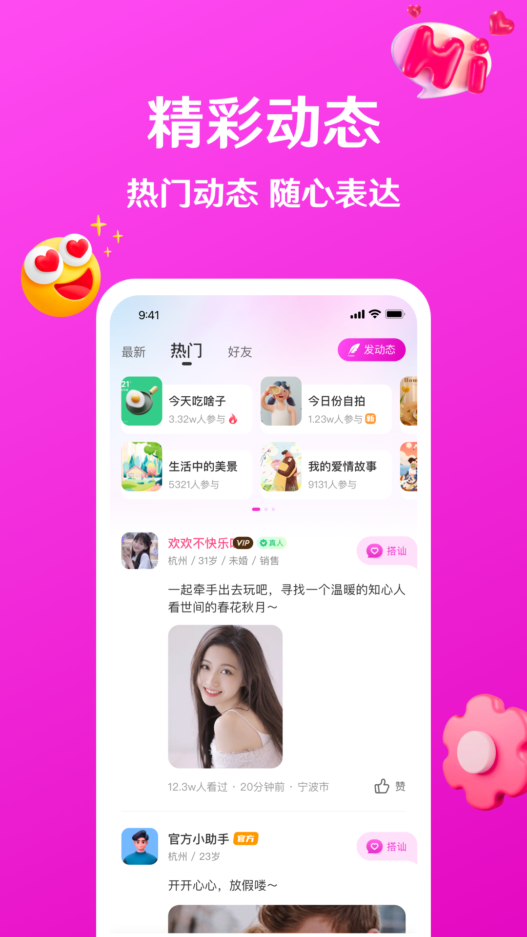 【动态广场】优质用户常驻,分享精彩日常