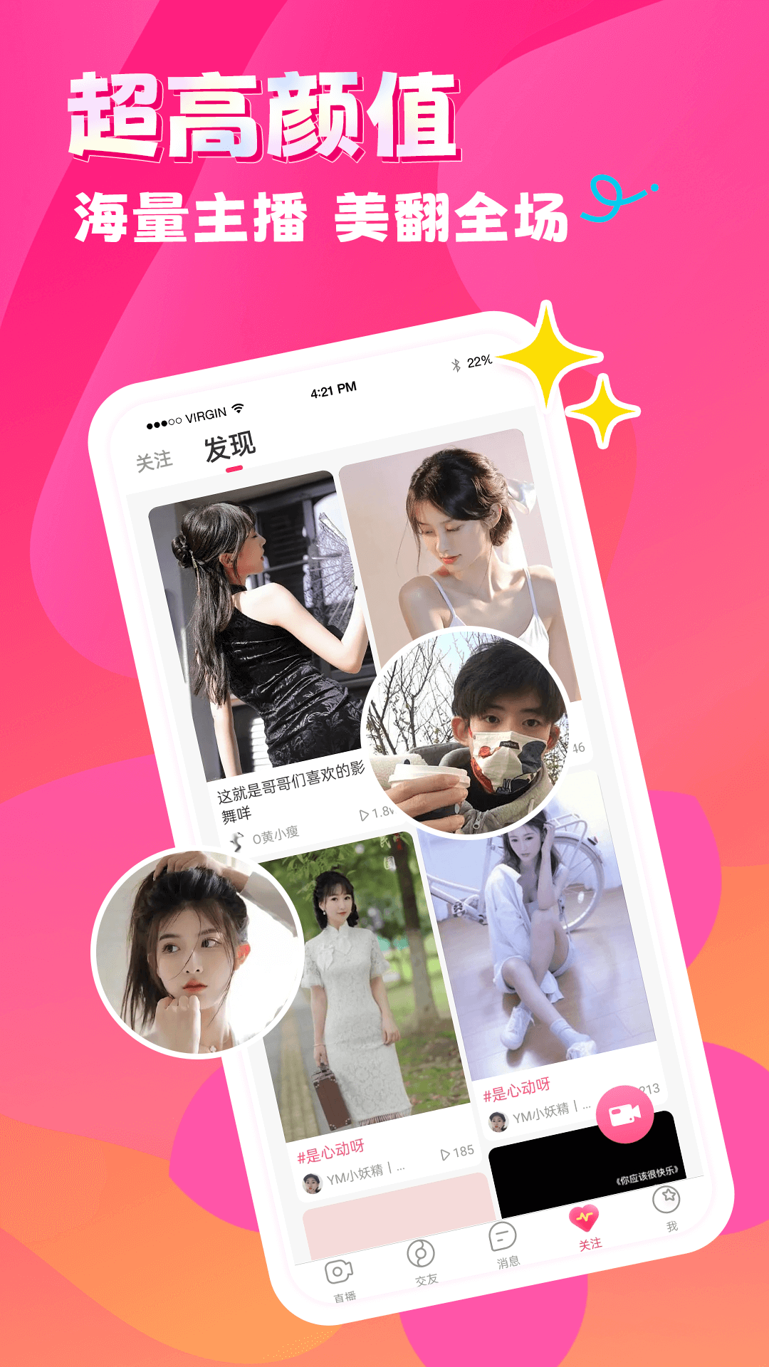 九秀直播,高颜值的直播平台,直播、社交、聊天、交友、短视频;更多好看好玩的直播尽在九秀直播! 全新的玩法,全新的功能让你和主播零距离接触,感受心仪的她优美辣舞和声优动听的魅力。在这里,你可以和约单约玩,送比心,可以同城附近交友,同城约会,可以和主播在线聊天交流情感,享受真人视频跳舞的欢乐,类似你在soul、积目时的网聊恋爱的感觉,是一款真正的直播交友、聊天社交软件。附近高颜值主播才艺花样秀,户外直播、游戏直播、花样吃播、惊艳视频,更多好玩的直播内容尽在九秀直播!和人气主播直播互动、视频交友、语音聊天享受生活每一天!直播、聊天、交友、短视频;有趣的玩法应有尽有。财神爷站提供九秀直播app官方版下载地址,有需要的用户可免费下载使用!
