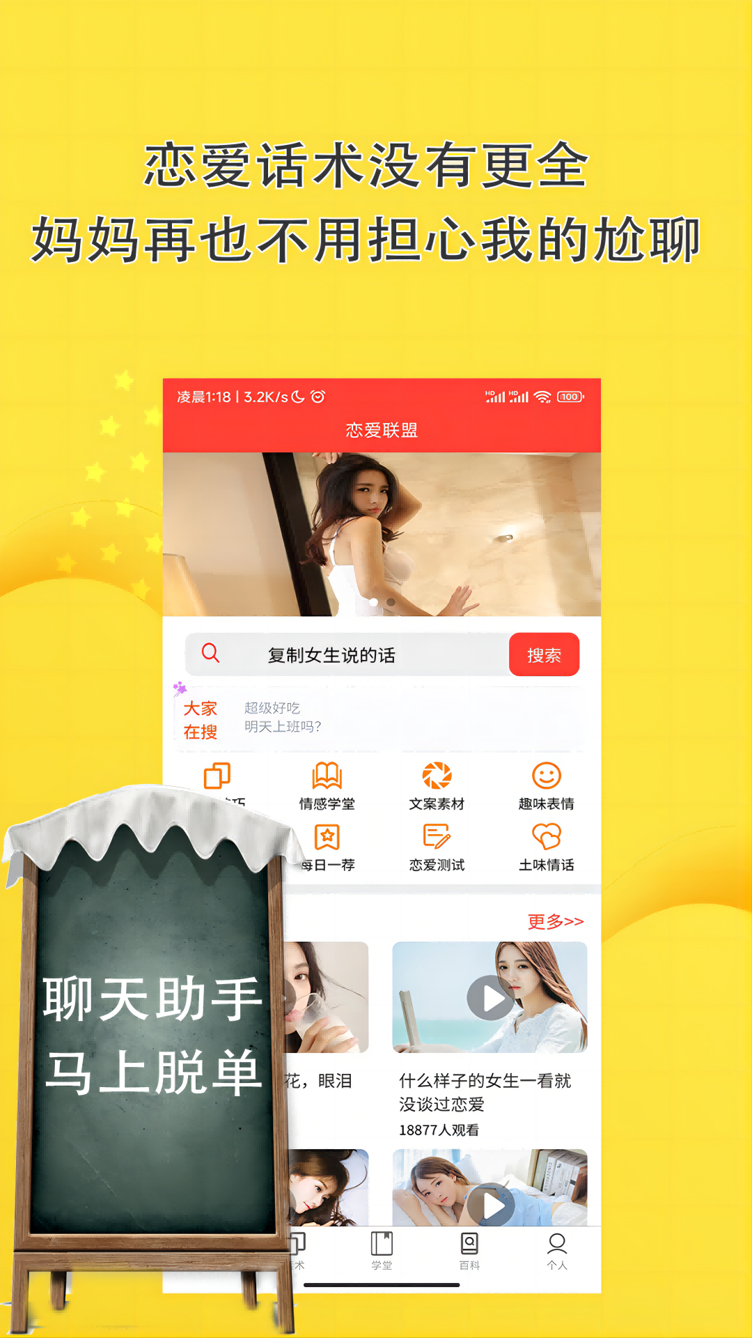 很多同学在这里学会了和对方聊天,各类脱单技巧可以让你懂得异性思维差异、社交思维,提升你的情商,让你成为一个颇具魅力的人,获得真正的成长和蜕变,收获最终的情感自由和幸福。