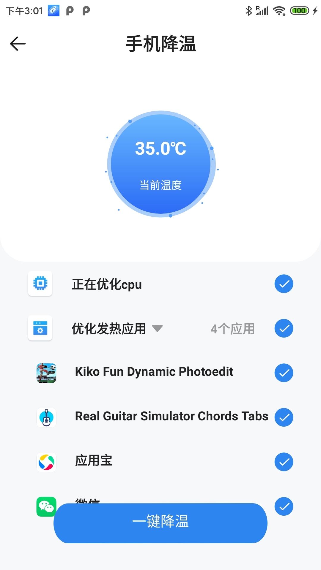免费杀毒软件 保护您的手机从病毒使用我们自己的防病毒引擎,以保护您的隐私。 增加你的手机速度 释放内存加速你的手机,你可以在感觉不同的速度后清理, 手机变酷 玩游戏时,手机的高温会导致停滞,可以用它来缓解手机的热度,提高更好的体验 电池优化 来体验! !