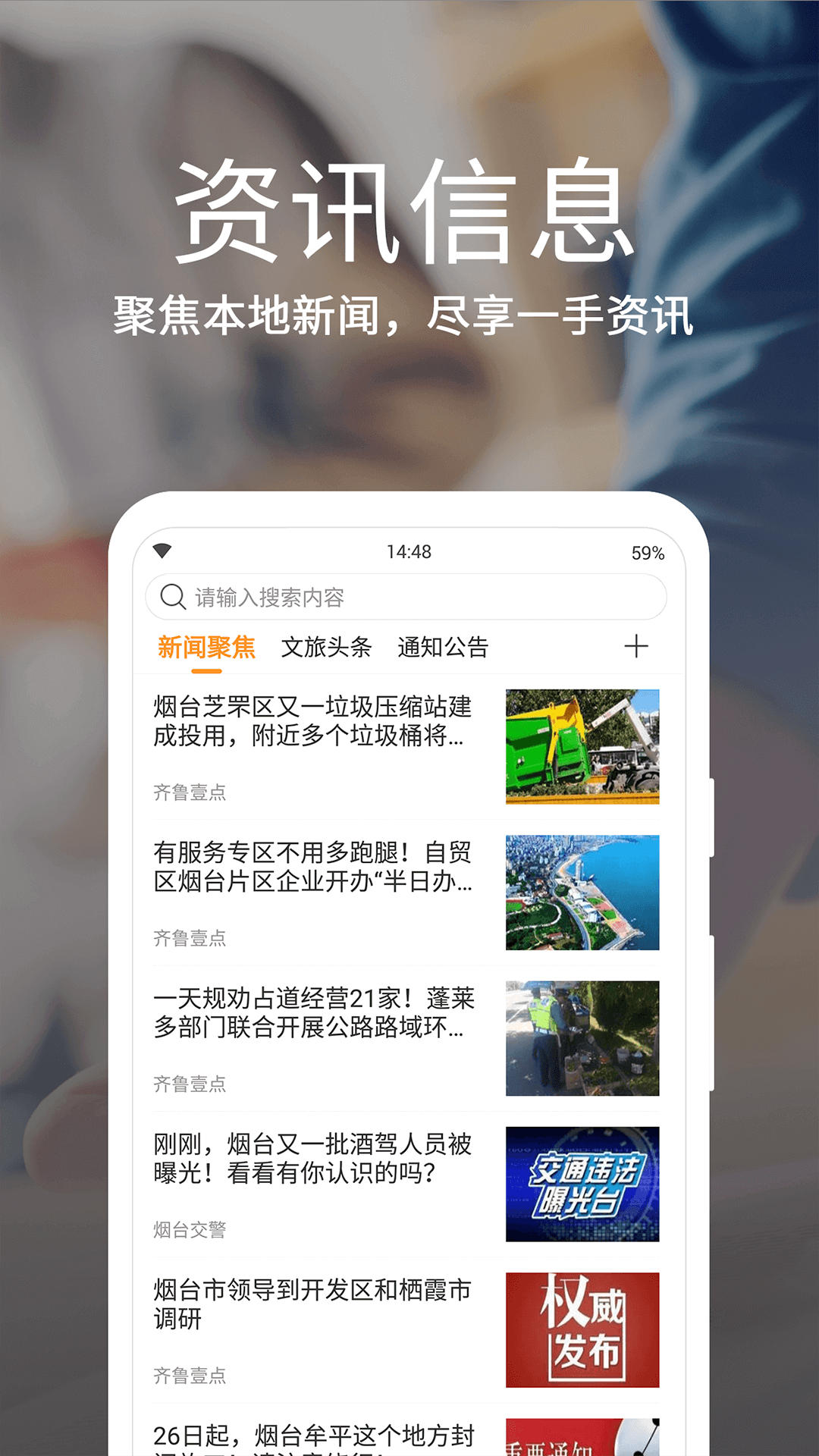 资讯:及时发布政务要闻、政务公开信息和本地新闻;