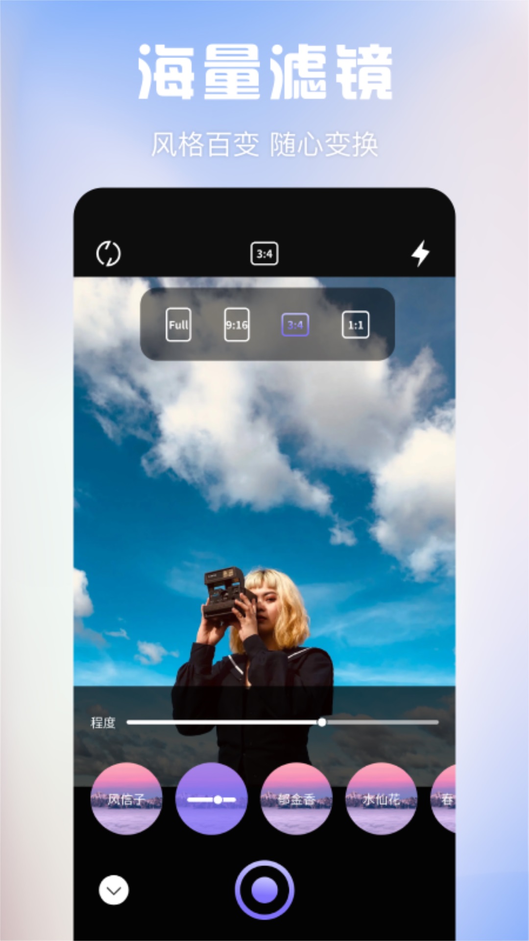 - 多级美颜强度,为您呈现完美皮肤 - 美颜自拍,实时预览