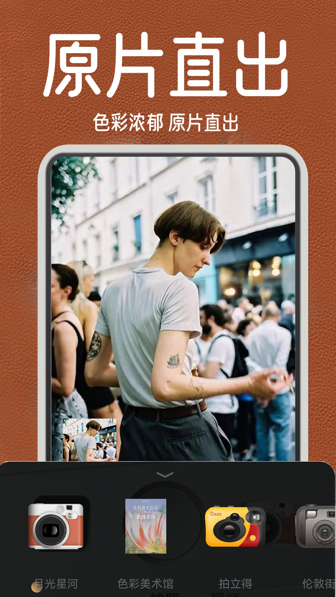 【相机皮肤】不同主体的胶卷滤镜将以不同的相机皮肤展现,拟物化的取景框带你走进沉浸式复古胶片拍摄。