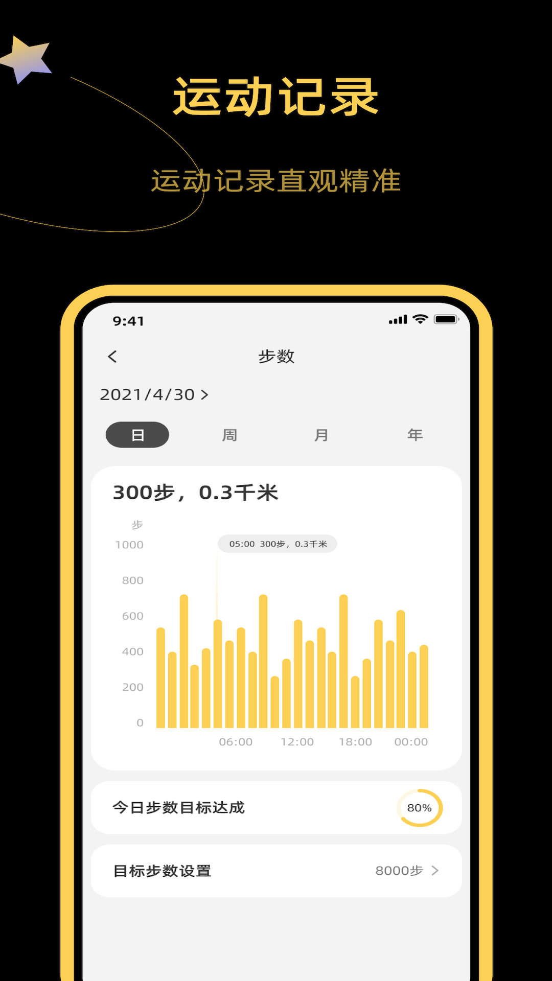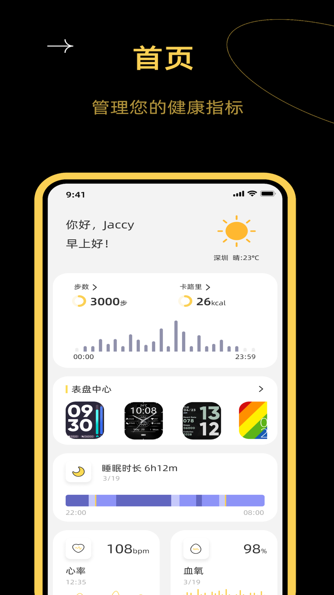 这款应用的使用需要佩戴配套的手表,即可实时的监测相关数据信息