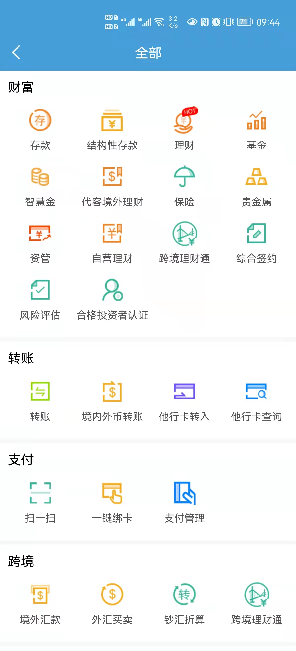 【暖心的设计风格】“首页”、“财富”、“融资”、“跨境”、“我的”五大模块闪亮登场,知您所想的展示栏位,及您所及的助手服务,为您打开掌上新“视”界,感受不一样的金融体验。【省心的全线购买】整合风险评估、投资理财综合签约、产品购买流程,一站式理财让财富触手可得;新增保险、贵金属、代客境外理财在线购买,您想要的“佩奇”,这里全都配齐。