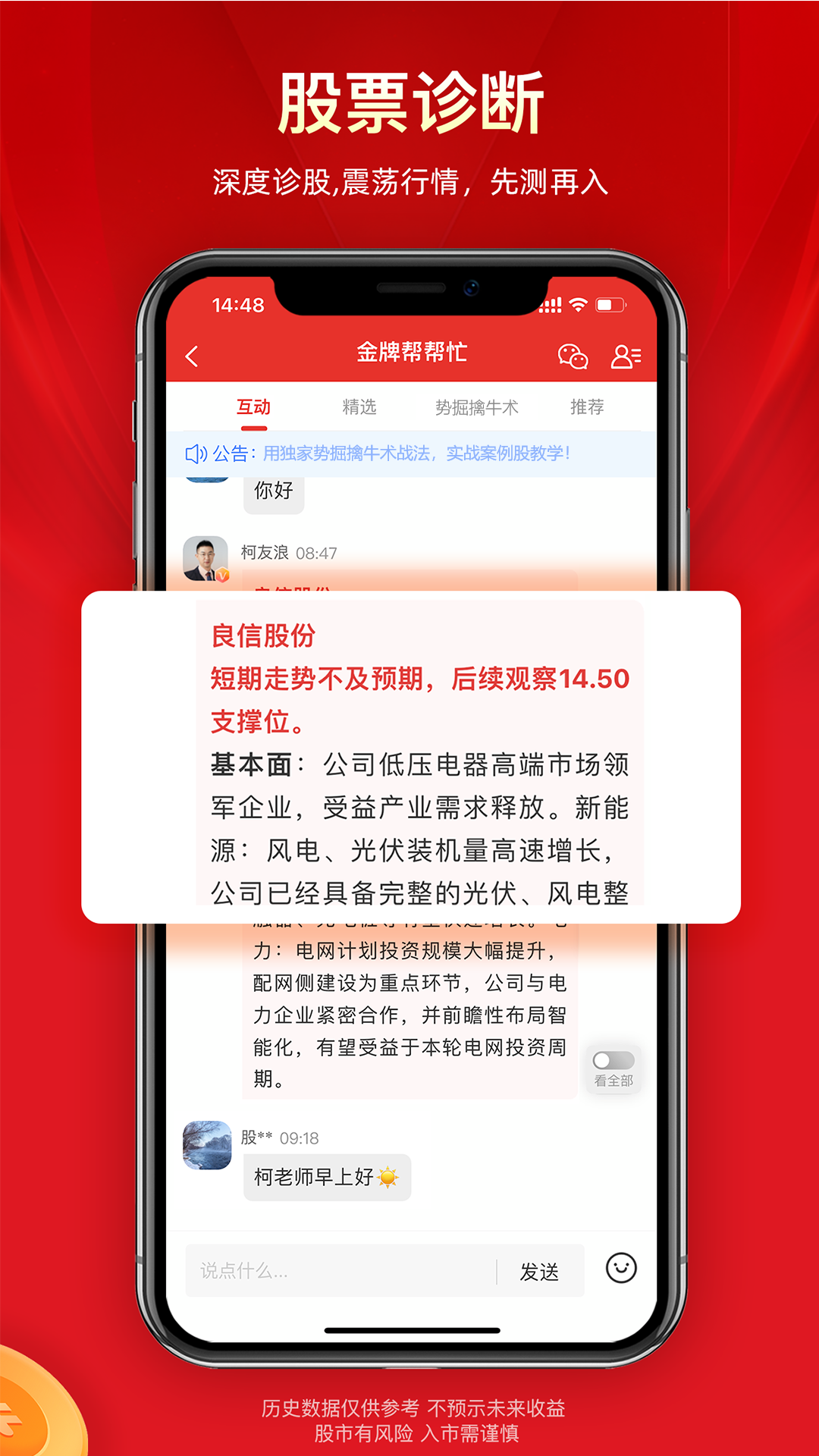 (4)互动诊股:互动诊断个股,治标更要治本,帮助你发现自身炒股问题,提供投资建议和解决方案,帮您避免再次踩坑;