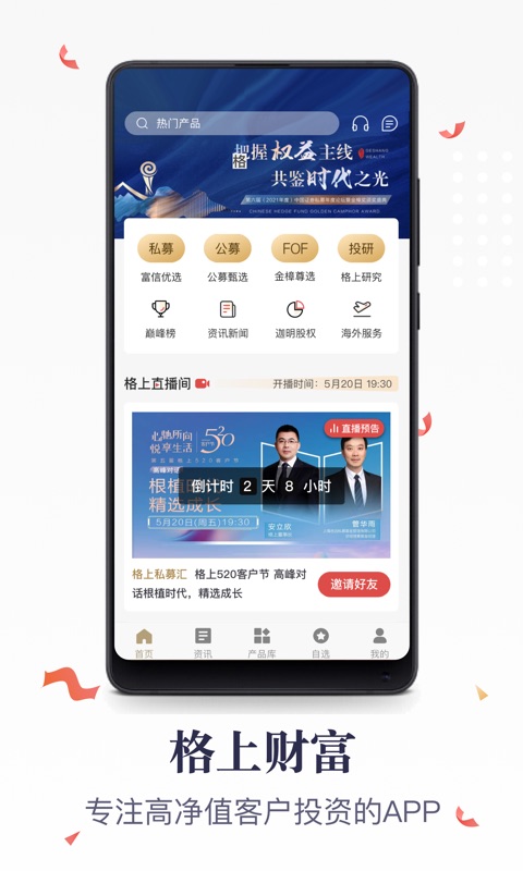 格上基金———私募证券高端理财投资平台【关于格上基金】北京格上富信基金销售有限公司(简称“格上富信”),是格上理财旗下财富管理平台,沿革于格上理财在基金销售板块的布局,于2015年在北京注册成立,于2016经中国证监会核准获颁《经营证券期货业务许可证》取得基金销售资格,并成为中国证券投资基金业协会联席会员,是专业从事公募基金及私募证券投资基金销售业务的独立基金销售机构。格上基金,拥有证监会颁发的基金销售资格,是基金业协会的联席会员。公司形成了强大的研究实力以及严格的风控能力为高净值客户的投资保驾护航,十年来深度调研,精选私募证券理财产品,为高净值客户量身定制个性化资产配置方案。 财神爷站提供格上基金app官方版下载地址,有需要的用户可免费下载使用!