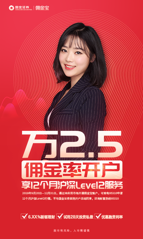 低佣开户:成功开户一律享受万分之二点五的股票、基金交易佣金率;