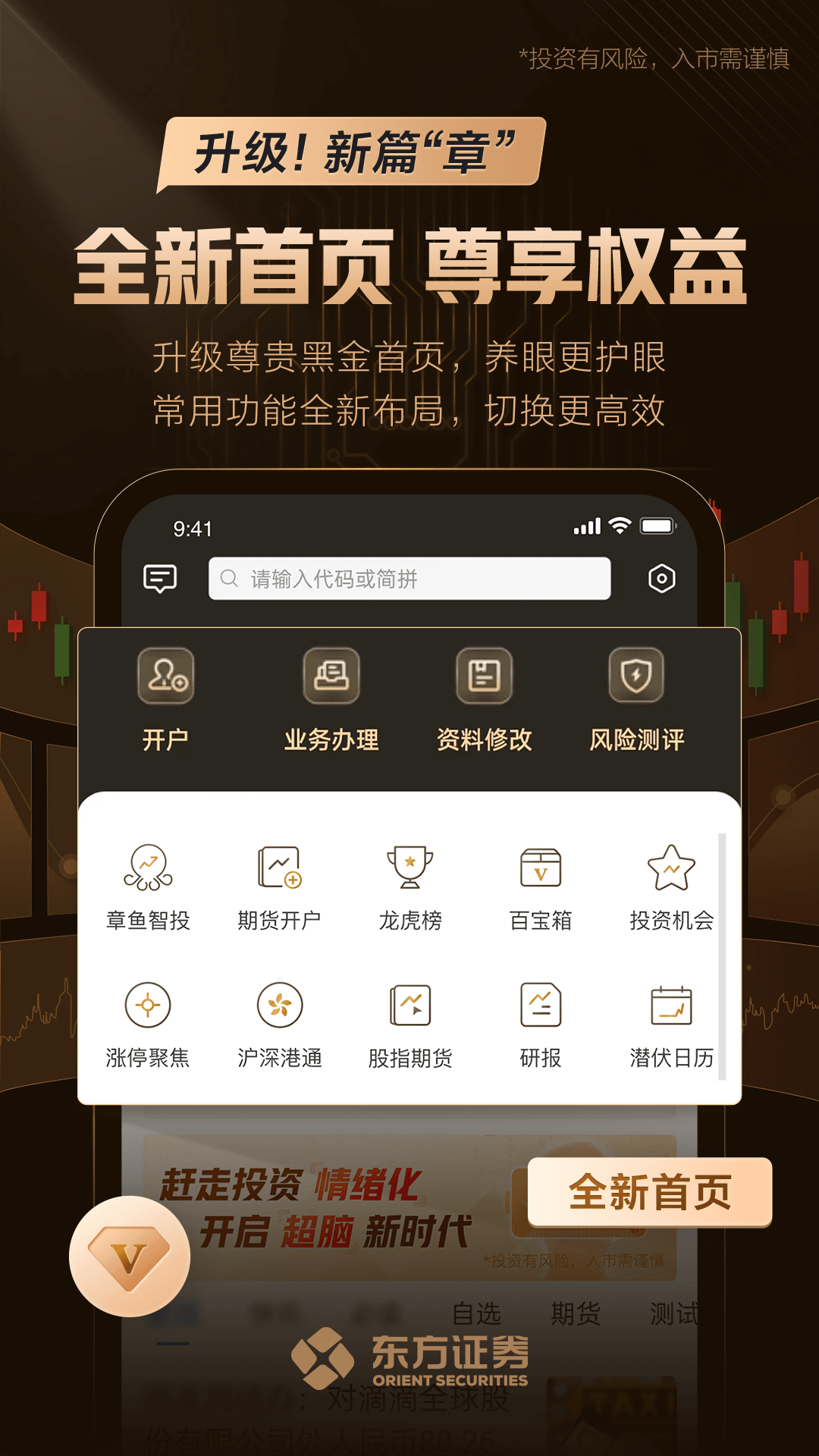 【智能投资工具】解股神器、选股宝、主力持仓等智能投资工具!东方证券章鱼互联APP全新启航,根据业务发展,未来将逐步丰富量化智能投资服务等重磅服务内容,为您打造一款多维市场融合式金融服务平台。东方证券为您升级服务,邀您体验投资非凡乐趣,悦享智慧投资之美。