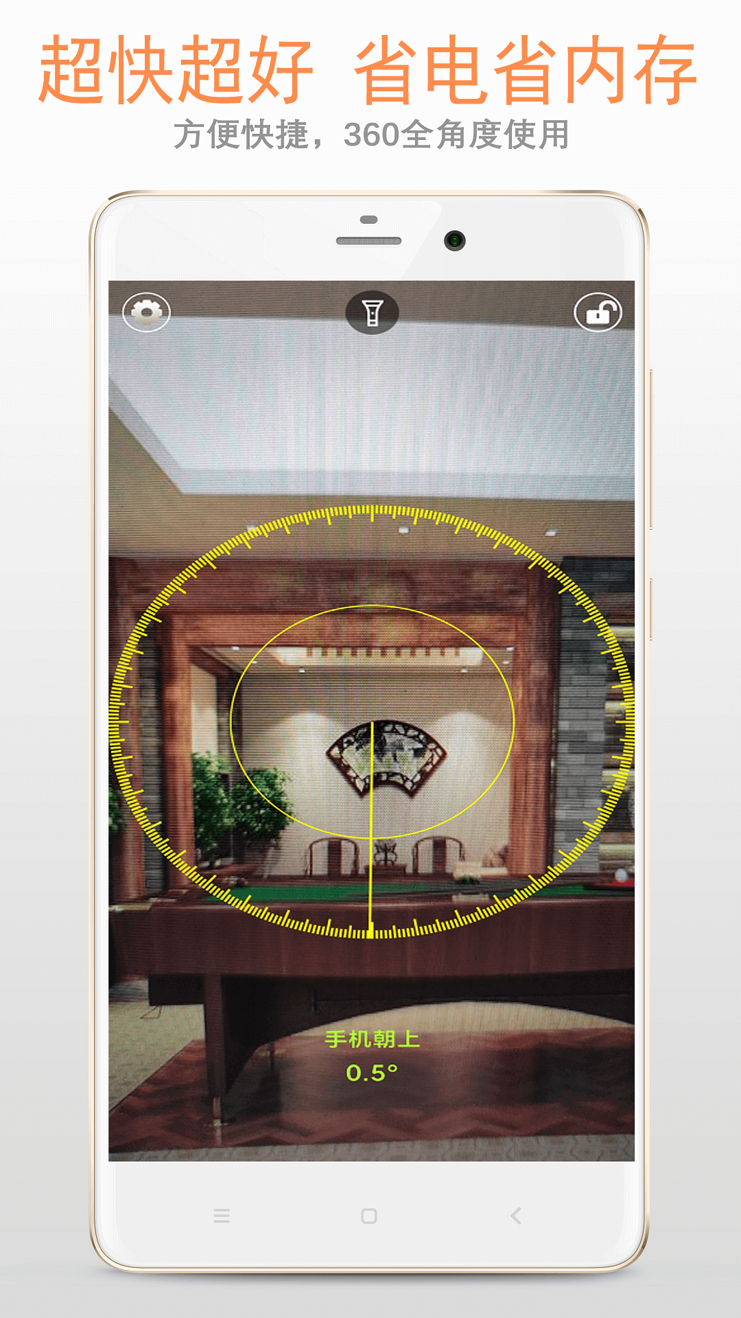 3、铅锤刻度自适应手机屏幕大小,支持360全角度使用;