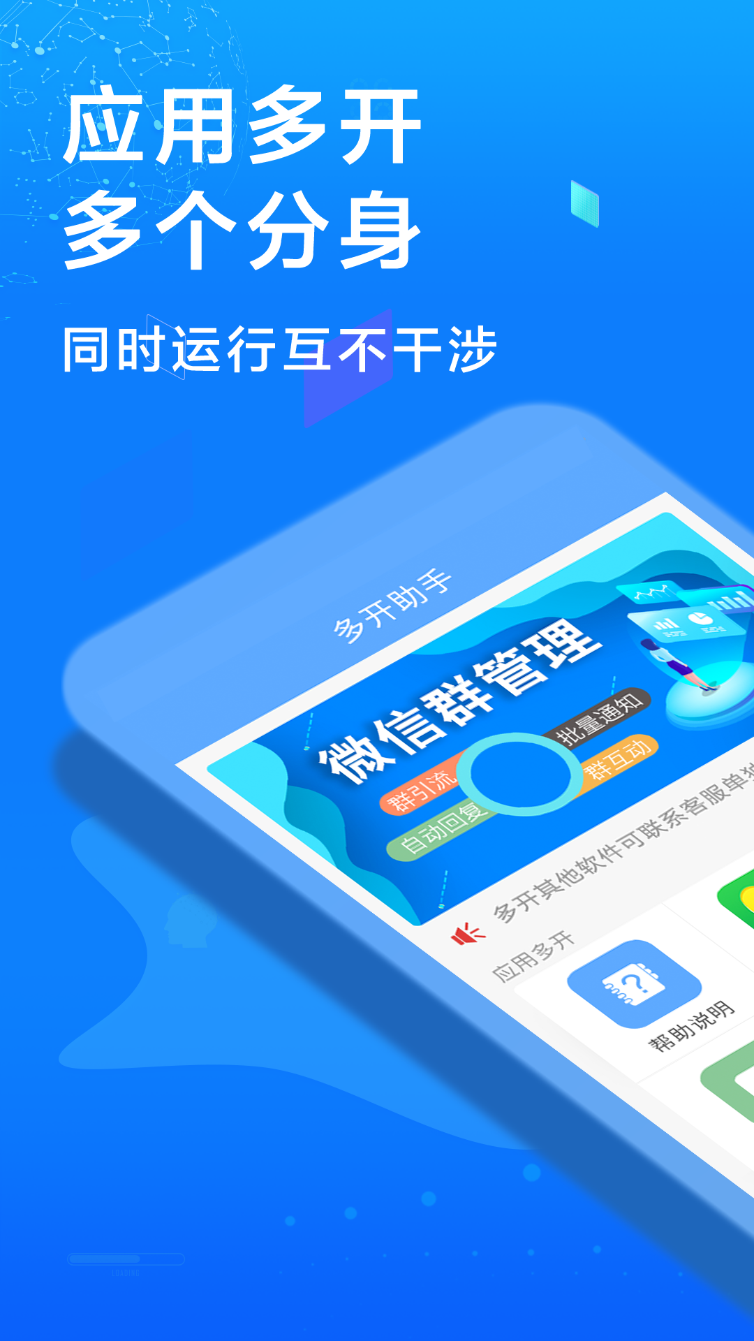 4步:等待分身制作完成后,手机桌面会出现一个分身图标,点击登录,即可实现多账号登录,既不会错过工作号、企业号的消息,也不会错过生活号的消息。如果您有多个小号,可开通多开会员,即可享受5个应用分身,满足用户多账号同时在线的需求,是您应用双开多开分身的好帮手,支持分身、多开、双开、分身版、小号、派派多开、淘宝多开、支付宝多开、游戏多开等应用双开多开分身。创内存机制多开手机不卡顿。