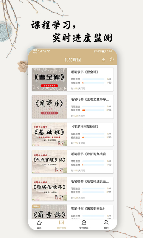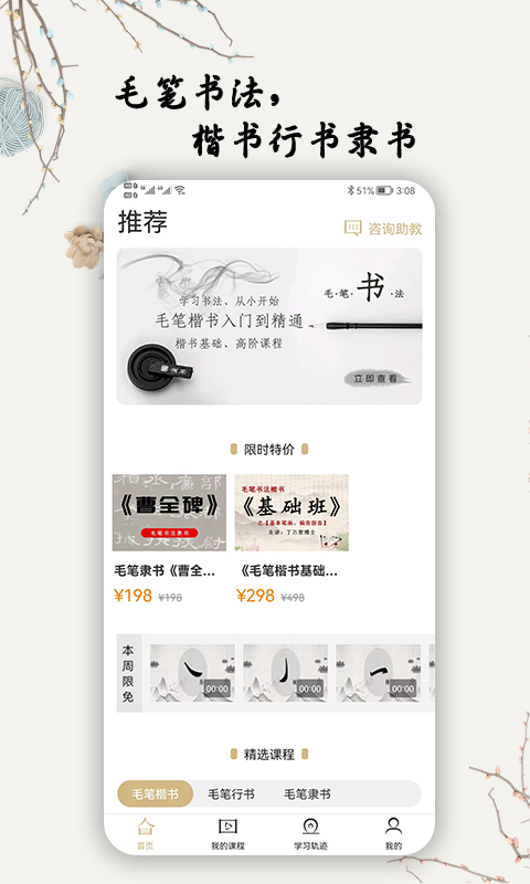1.课程丰富:包含篆书,楷书,隶书,魏碑,小篆,行书等多种毛笔书法课程