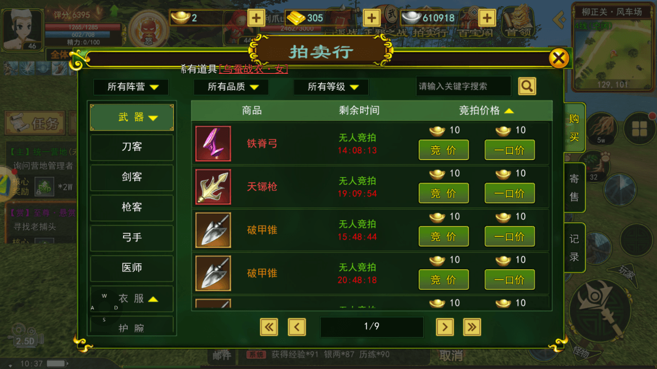 职业技能:穿云弓、追月弓夺魂弓、饮血弓。