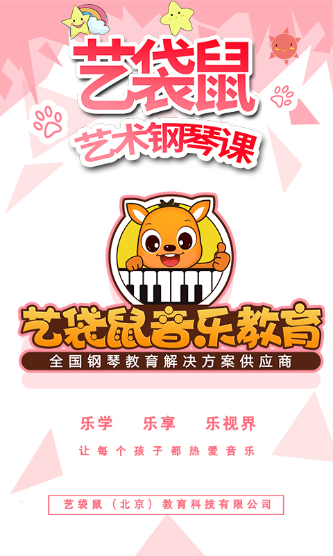 艺袋鼠的愿景,为加强和完善中国的音乐教育现状,并与国际接轨而努力,核心教研团队均由国内外顶尖的一线名师组成,充分参考孩子的特性和接受度,融合了国际上多种教学方法的优势和先进的教学理念,创新的《融合教学法》,“五位一体”全方位加强感性素质的培养,让音乐和审美,真正深入孩子的内心,强调艺术感染力和综合应用能力,找到传统教学与游戏教学的平衡点,家长需求和孩子兴趣的平衡点艺袋鼠将学习音乐的整个过程整合在APP的功能中,是专门为3~12岁儿童、家长、及艺术类从业教师和培训机构开发的艺术类学习交流和应用软件,为老师上课提供*便捷的教学工具,集合了钢琴等多种乐器品类,以课程内容为核心,为机构提供专业化系统性的课程、保证教学结果、帮助机构进行线上招生宣传用户导流、提供师资培训、运营培训、管理培训等线上线下服务 为孩子提供课程内容回顾、视频回复老师作业、视频展示、游学、音乐会活动、在线名师课程、跟我琴弹等服务艺袋鼠更新日志: