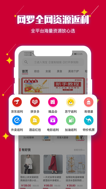 【返利专区】 专业买手选款,全品类覆盖,购物同时能返现。